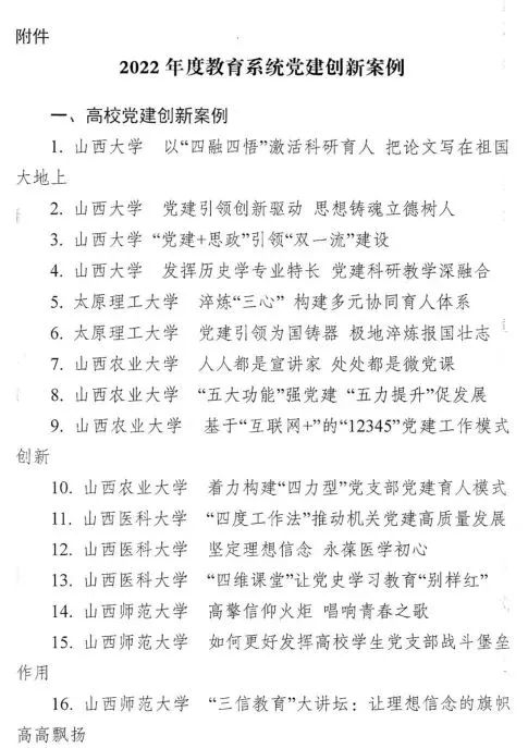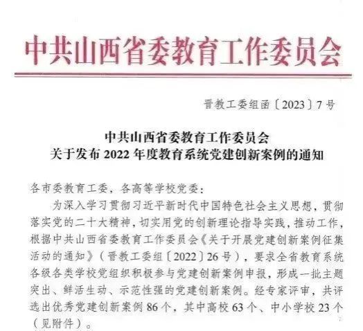 近日,中共山西省委教育工作委员会公布了2022年度全省教育系统党建创新案例评选结果。91制片厂