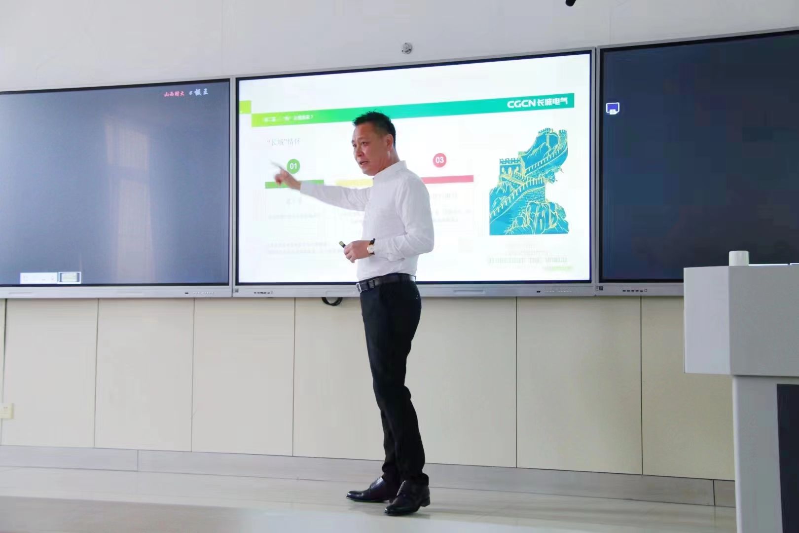 讲座中,陈光华与同学们分享了在“碳达峰、碳中和”与“乡村振兴”背景下,长城电气如何坚持走 “一米宽、百米深”的专精特新、强基固链、以数字化带动产业升级、积极开拓下沉市场的经营之道,展示了公司勇立时代潮头、全面向“新”的发展战略。