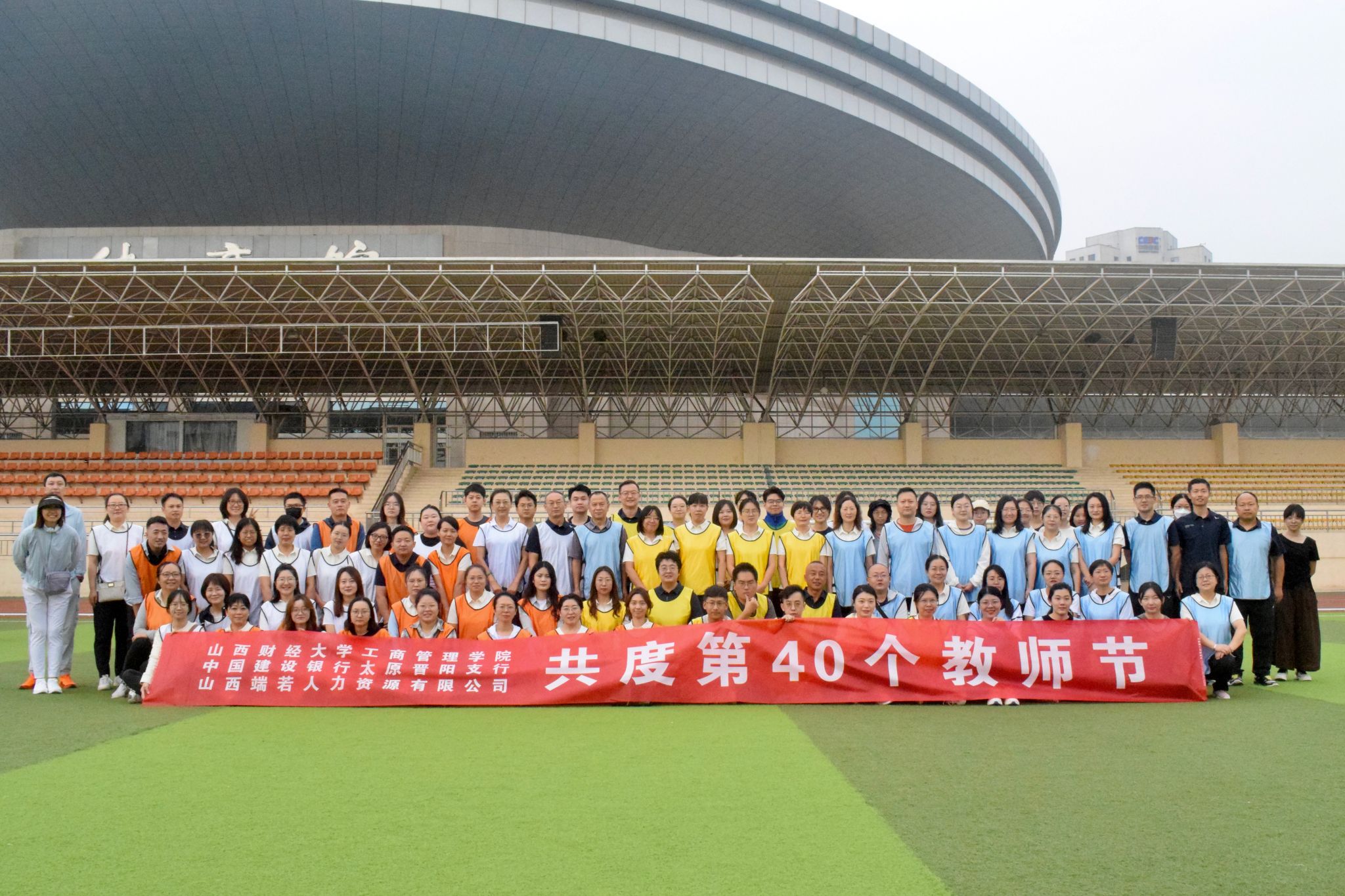 携手中国建设银行太原晋阳支行和山西端若人力有限公司,在坞城校区田径场联合举办了教师节趣味运动会。学院党委书记高岳、工会主席闫向连以及来自两个单位的70多名运动员参加本次活动。学院党委副书记周志刚主持开幕式。
