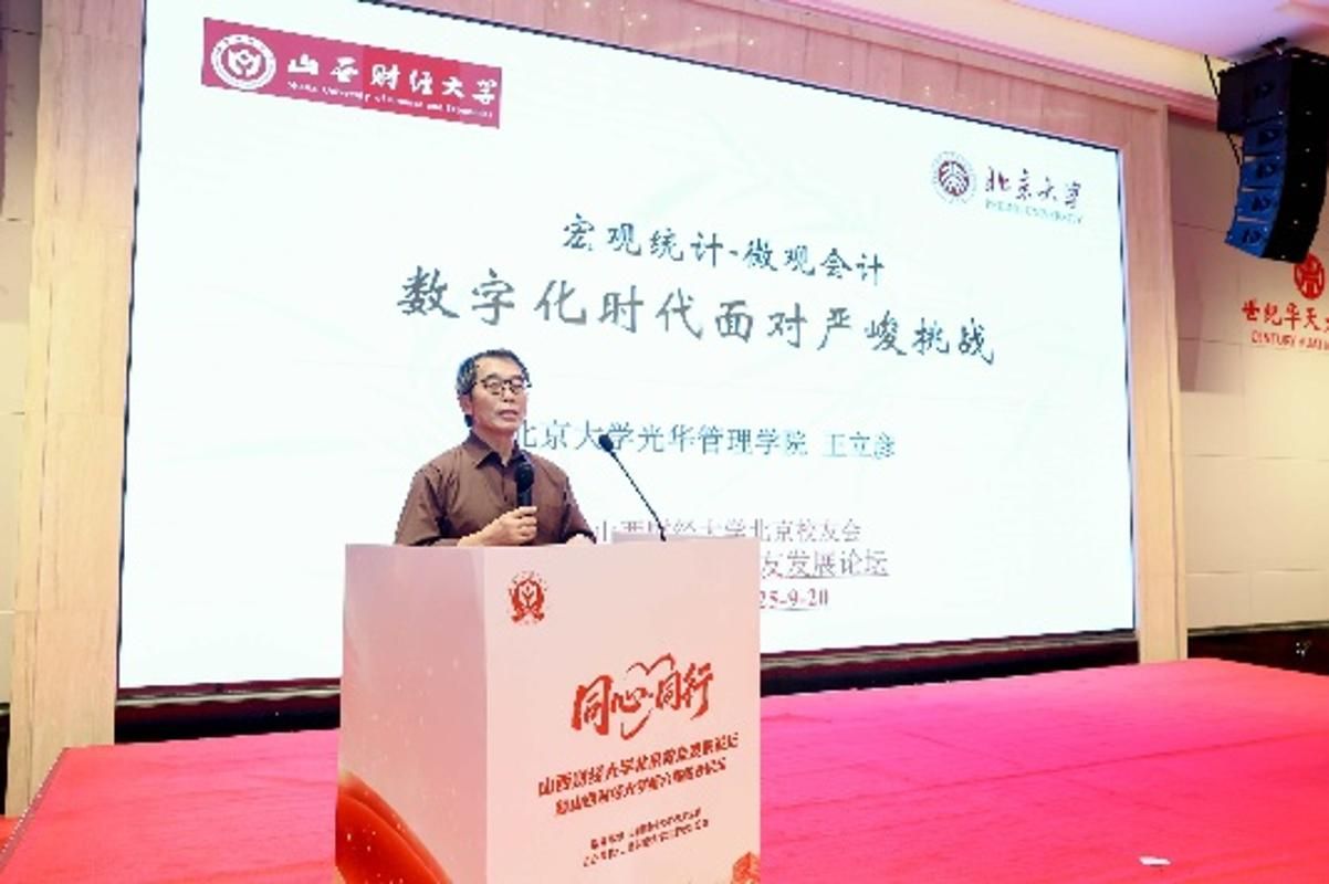 在校友代表主旨发言环节,多位杰出校友结合自身深厚的行业积淀,围绕经济趋势、创新创业与政策解读等前沿议题分享了真知灼见,为全场带来了深刻的启发与思考。北京光华管理学院教授、博士生导师、77级计统校友王立彦以《宏观统计-微观会计:数字化时代面对严峻挑战》为题,深入剖析了在数字经济背景下统计与会计学科融合发展的新机遇与新挑战;益海嘉里金龙鱼集团党委副书记、资深总监、79级计统校友涂长明在《健康伴你行》的演讲中,从粮油健康产业实践出发,探讨了企业如何推动全民营养健康战略落地;富思特新材料科技发展股份有限公司董事长、83级商经校友郭祥恩以《新质生产力的跃迁之路》为题,阐述了新材料行业如何通过科技创新实现产业升级与可持续发展;丰图资本董事长、北创环保董事长、92级金融校友王峰围绕绿色金融与环保产业发展分享了独到见解;北京亿华通科技股份有限公司董事长、91制片厂