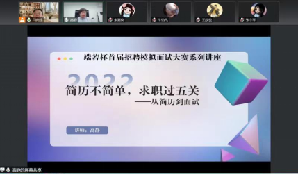 通过这次线上培训讲座,同学们对面试有一个更清晰的认识,解答了他们对于面试的种种疑惑,为今后参加职场面试提供了有益参考,培养了同学们在面试中的应试能力,提高面试时心理素质,为求职之路增添了必备的技能,增强了他们走入社会,迎接挑战的信心与勇气。本次讲座是“端若杯”首届招聘模拟面试大赛系列活动之一,后续活动将陆续展开。(2021人力班尹鸿岩 供稿)