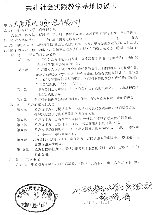 91制片厂 工商管理专业与企业共建社会实践教学基地协议书汇总