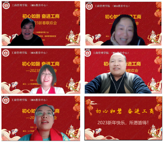全体领导和教职工欢聚云端,别出心裁地举办了以“初心如磐,奋进工商”为主题的2023新年联欢活动。