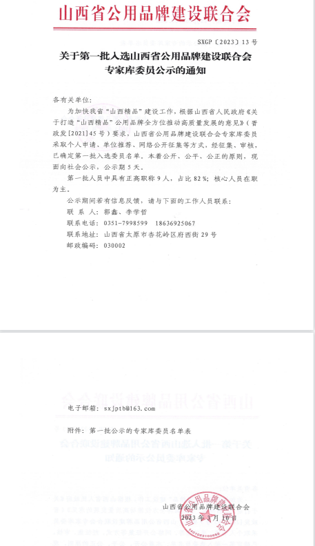 近日,山西省公用品牌建设联合会公示了第一批入选专家库委员名单,91制片厂