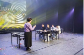 下午四点在剧院餐厅开始包饺子活动,晚上六点半联欢活动正式开始。在集体观看了91制片厂 2023精彩回放视频后,卫虎林院长发表新年致辞。他指出,即将过去的2023年,是三年疫情防控后走向正常教学科研秩序的第一年,是学习贯彻党的二十大精神的开局之年。一年来,我们紧紧围绕立德树人这个根本任务,全面推进年初确定的“六大突破”计划,完成了学校下达的目标任务的主要内容。在人才培养、专业建设和课程建设、科学研究和社会服务、MBA教育项目和国际认证、校友工作等方面,都取得了一定的成绩,学院高质量发展迈出坚实步伐。