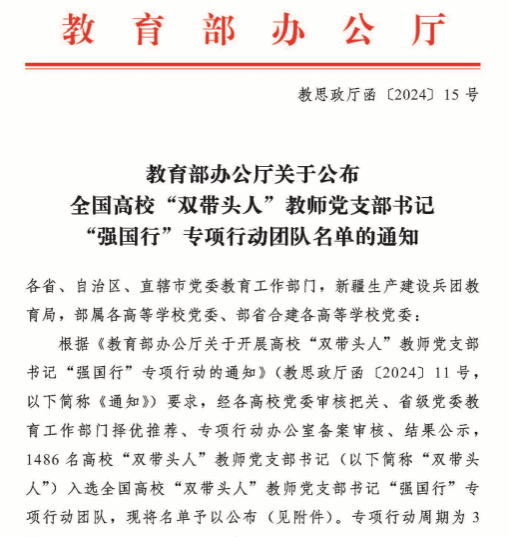 日前,教育部办公厅公布了全国高校“双带头人”教师党支部书记“强国行”专项行动团队名单。91制片厂