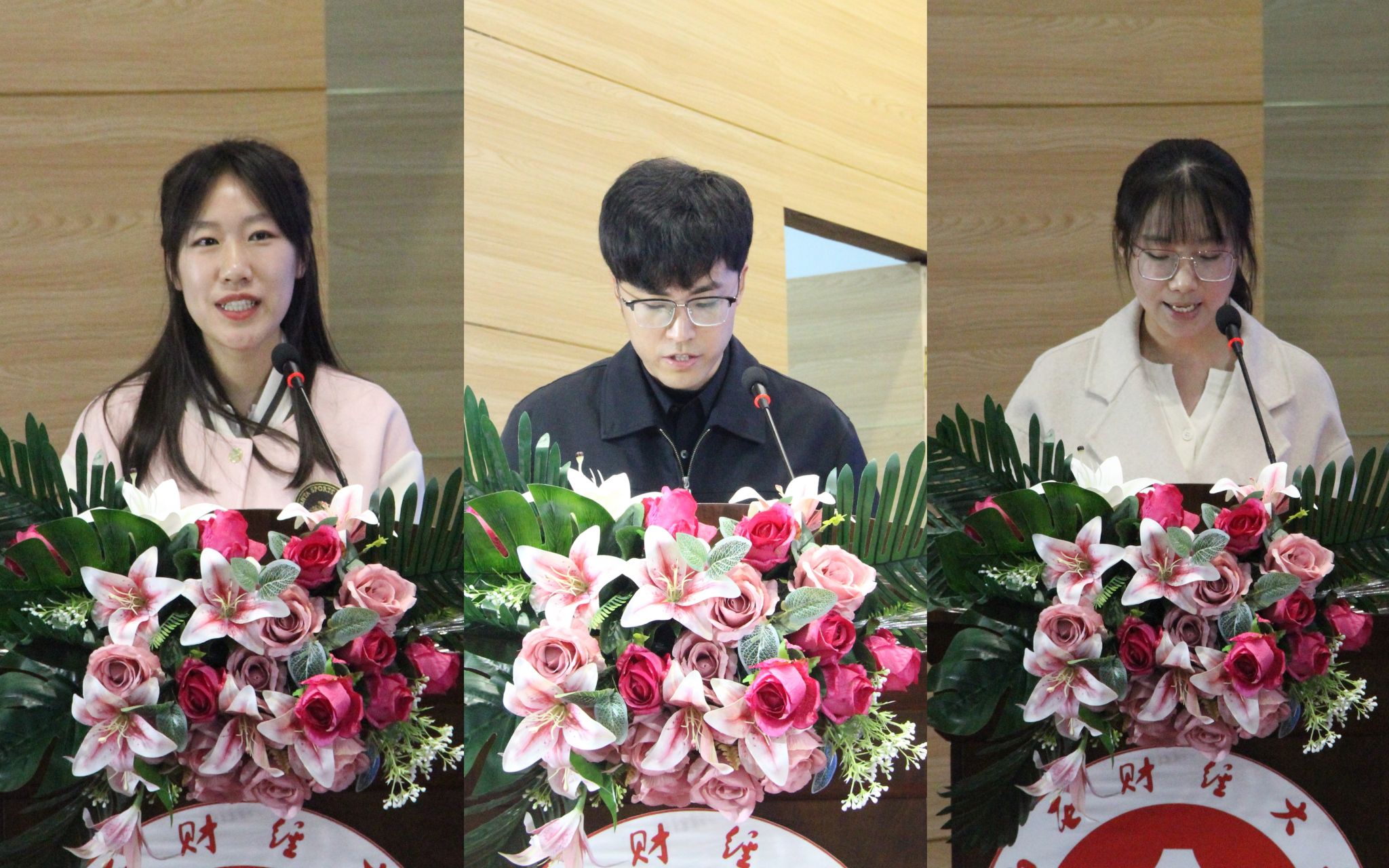 博士研究生代表牛晓媛同学、硕士研究生代表赵李元清同学、本科生代表赵梓旭同学通过分享自己学习经历,鼓励2024级新同学锐意进取,在日常学习生活中展现出工商学子修德立信、博学求真的理想与追求。