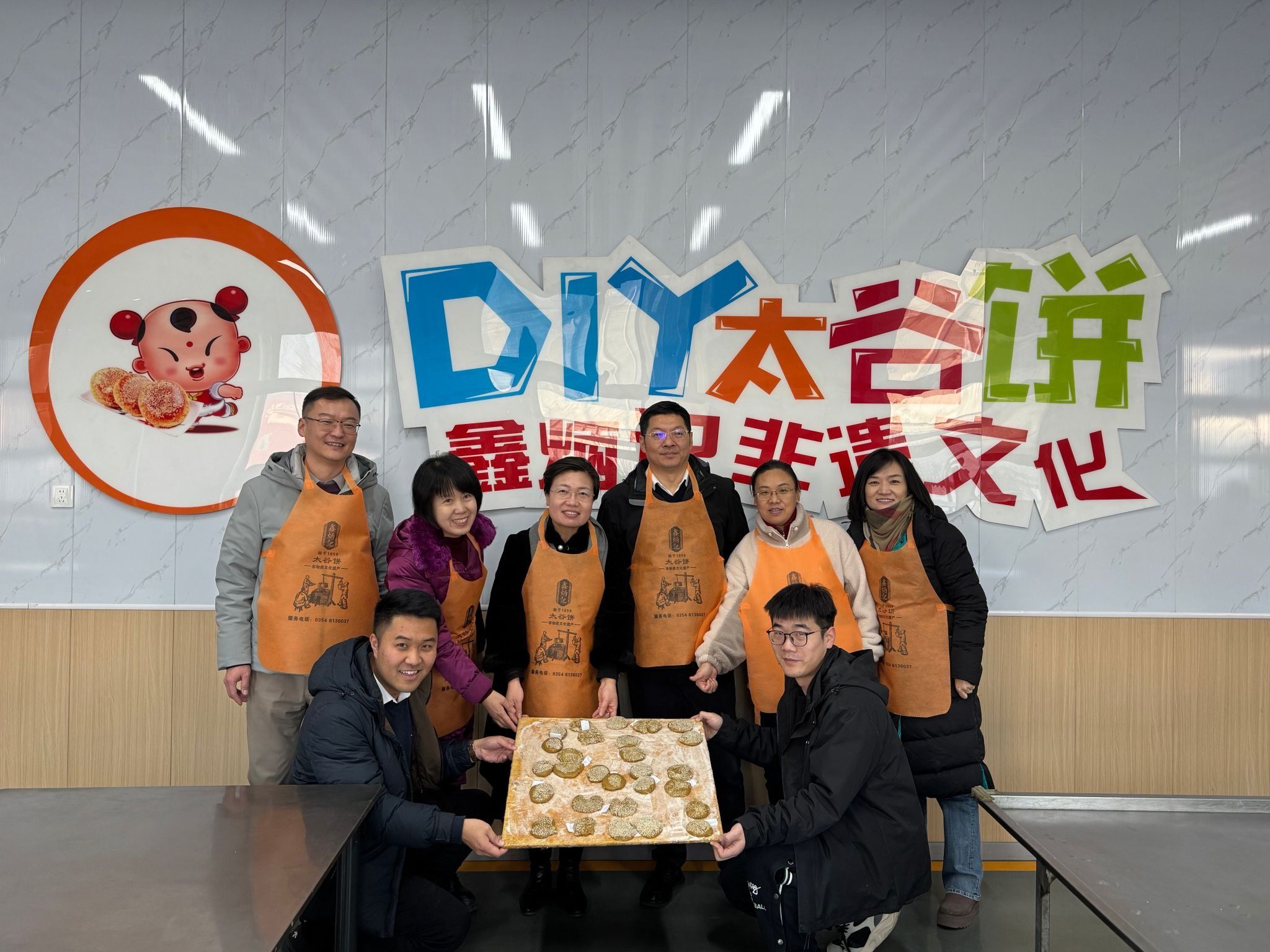 一行人参观了太谷县非物质文化遗产展示厅、鑫炳记食府、鑫炳记超市、太谷供销社记忆馆以及鑫炳记制作工厂,深入探索了太谷县丰富的历史文化底蕴,特别是对太谷饼的由来有了全面地了解;深入了解了太谷饼制作流程,从原料精选,到和面、成型、烘焙、包装等各个环节,每一道工序都经过细致的把关,确保最终成品的口感与品质。参观过程中,还亲身体验了太谷饼的DIY制作,感受了传统食品加工工艺的魅力。