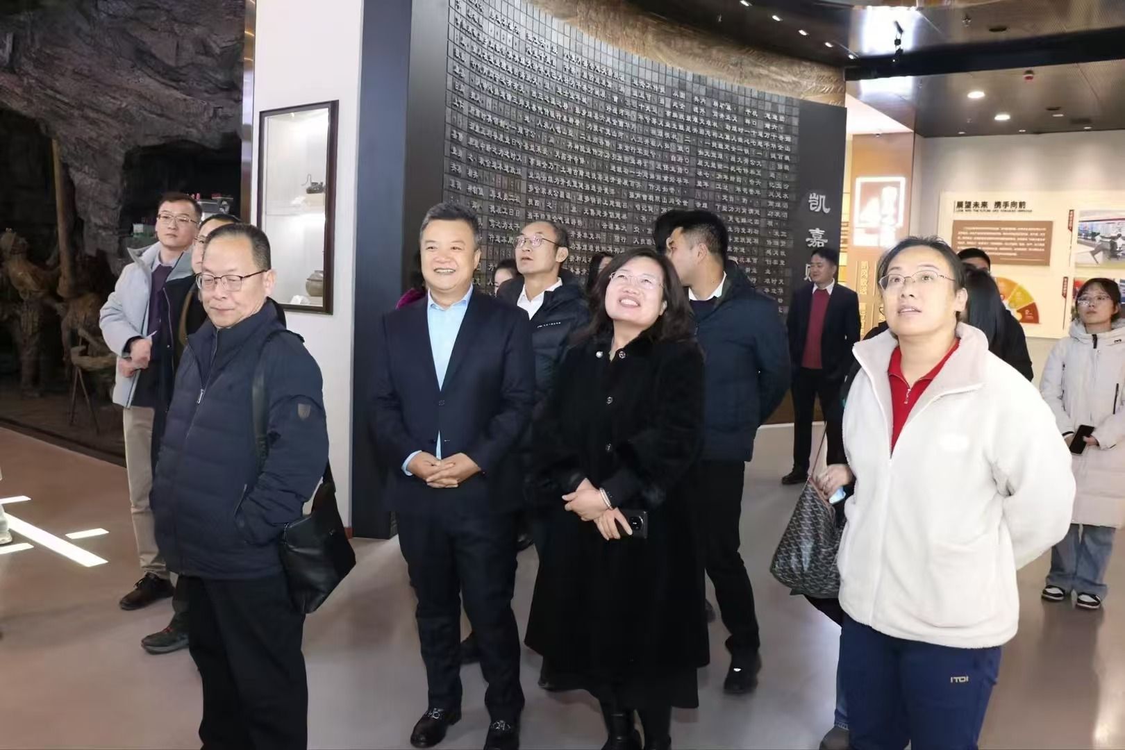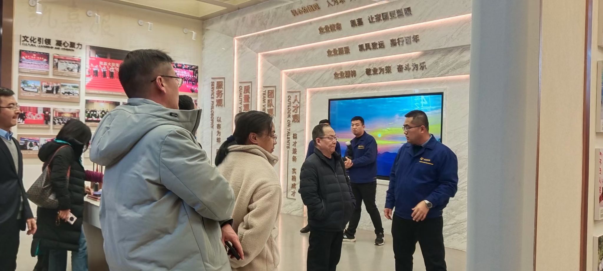 一行人首先参观了凯嘉集团创研大厦文化展厅与数字化调度指挥中心,了解了凯嘉集团的发展历程、91制片厂、经营管理及其智能化生产调度系统,尤其是凯嘉集团富有社会责任感的使命、愿景和企业目标有助于领会张壁古堡文旅项目建设的初心。