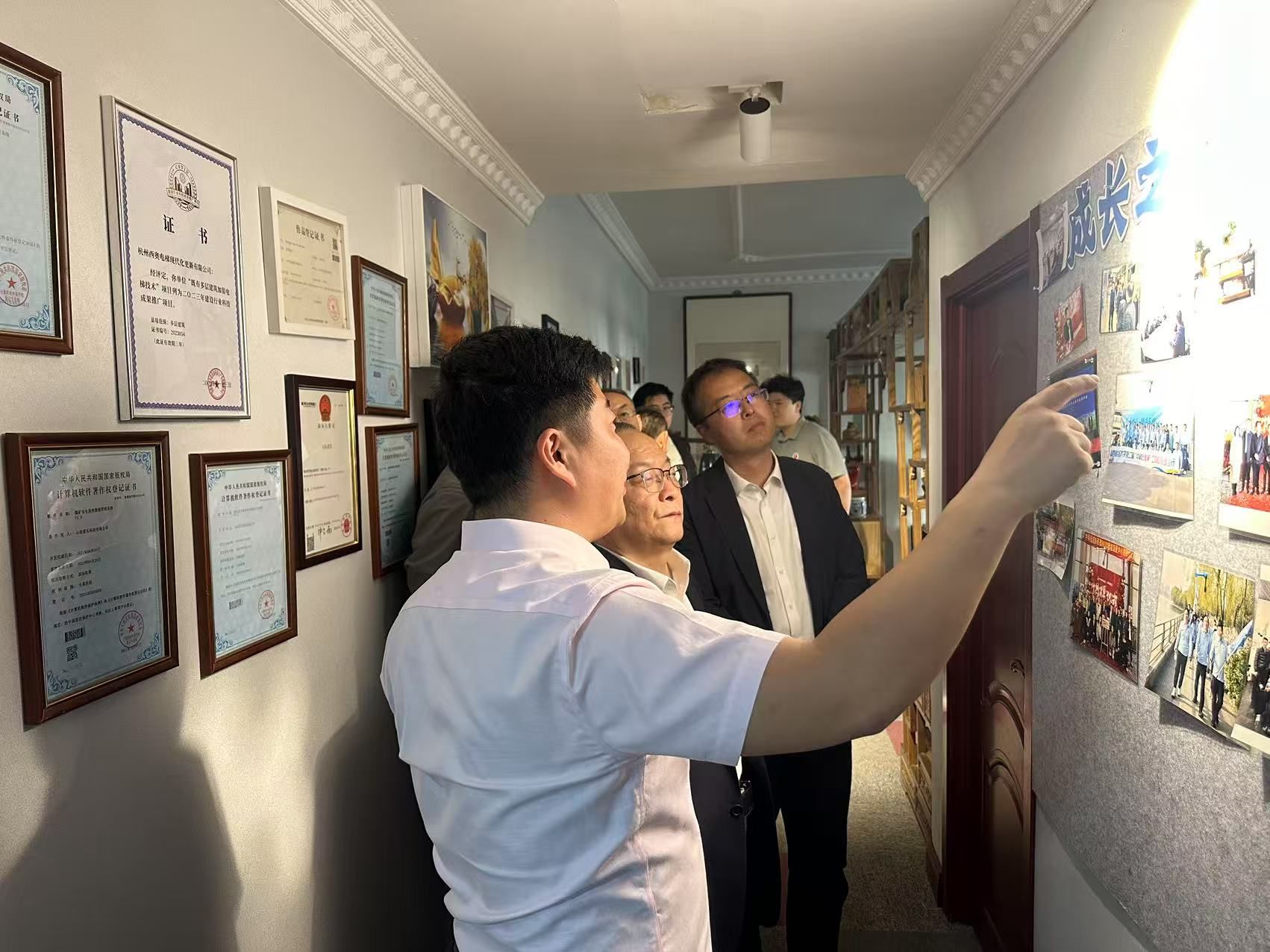 在我校2018级MBA校友、中科远航董事长徐强的陪同下,学院一行参观了公司文化墙,了解公司发展历程、项目资质及战略规划。在参访座谈会上,徐强表示希望通过此次“访企拓岗”活动使得企业与母校建立起更紧密的合作关系,实现人才培养、人才测评以及促进毕业生高质量就业的双赢局面。