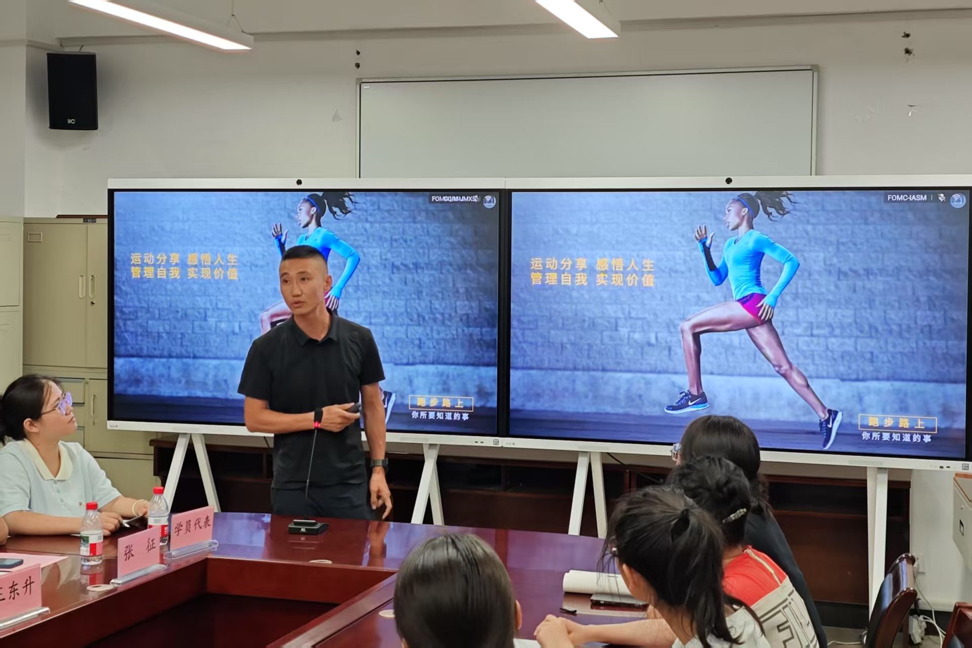 的美好祝愿。山西智胜传媒科技股份有限公司董事长郭海明以独特的文化视角,深入剖析“卓越”二字的内涵,指出了人生道路上选择的重要性,并鼓励同学们相信自己,热爱自己选择的道路。山西水木年华网络科技有限公司创始人刘强讲述了自己的职业经历和创业历程,分享了自己选择人力资源服务行业的原因和创办幸福企业的核心价值观,以亲身经历激励同学们找到适合自己的事业,并在长期坚持中发掘自己的潜力。山西体姆体育发展有限公司总经理马强分享了自己在马拉松和沙漠徒步赛事中挑战极限、突破自我的热血经历,强调了自律、坚持、挑战自我、团队精神的重要性,鼓励同学们不断超越自我,迈向卓越。