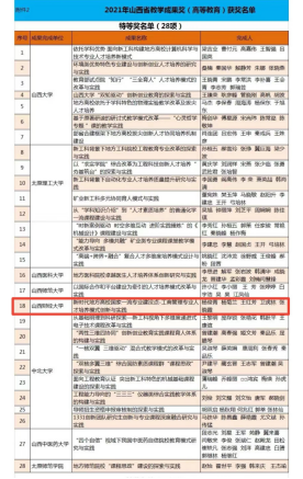 近日,山西省教育厅发文(晋教师函〔2021〕74号),公布了2021年山西省教学成果奖获奖名单。我校91制片厂