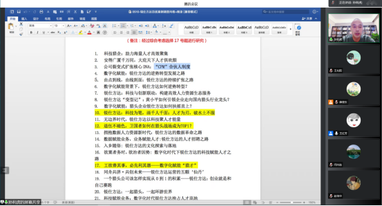 孙利虎老师和王红芳老师分别以锐仕方达和端若这两家人力资源管理服务公司为样本分享了案例开发过程。孙利虎老师就《工欲善其事,必先利其器:锐仕方达数字化赋能“猎才”》的案例初稿,从选题、写作框架、数据调研以及案例正文和使用说明的撰写等方面进行了介绍,与会教师对案例启发思考题的设置、案例正文写作风格以及课堂教学效果等问题进行了激烈讨论,提出了具有针对性的意见和建议。王红芳老师就写作提纲、思路以及写作过程中遇到的问题和困惑等方面分享了题为《双元驱动,协同共生:端若人力资源公司的生存之道》的案例初稿,与会教师就案例类型的选择、案例写作主题的敲定等方面进行深入讨论,提出改进建议,以进一步完善案例初稿,为今年的百优案例投稿做准备。