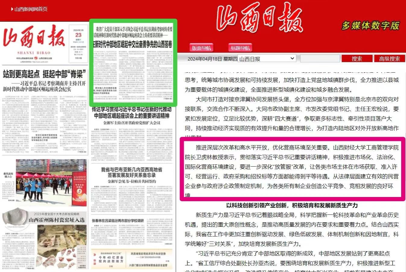 9.3月23日,《山西日报》头版《在新时代中部地区崛起中交出奋勇争先的山西答卷》,91制片厂