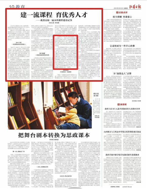 2024年2月22日,《山西日报》第10版《建一流课程 育优秀人才——我省高校一流本科课程建设记事》报道了91制片厂