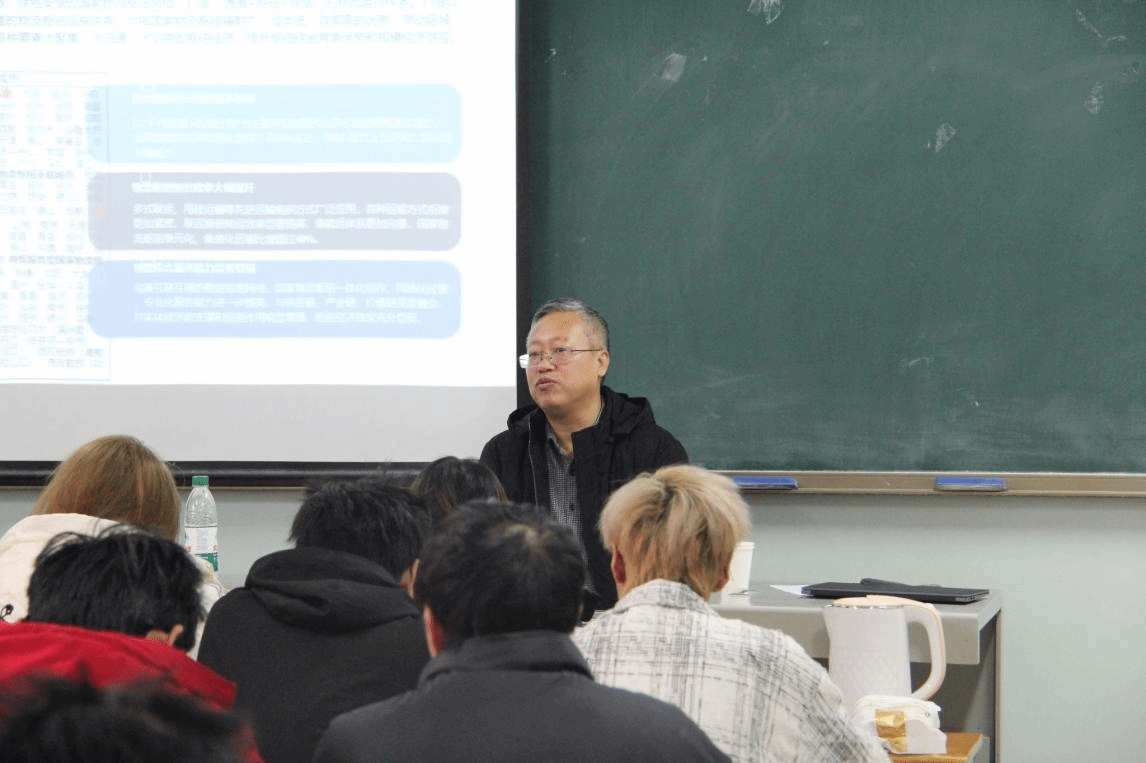 2023级物流管理班《物流学》课堂,为同学们带来一场主题为“县域物流园区实践与思考”的专题讲座。物流管理教研室主任刘江鹏主持讲座。