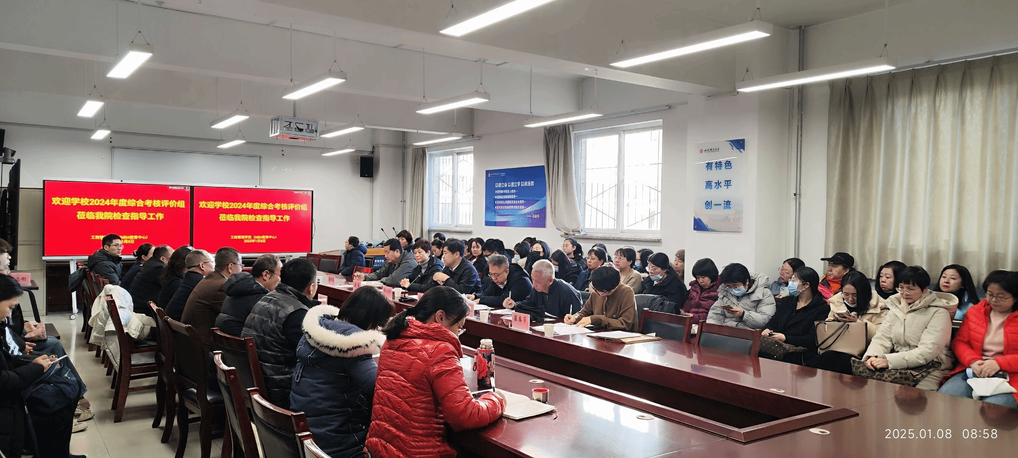 ,对学院2024年度工作进行综合考核评价。学院领导、全体教职工和学生代表等共九十余人参加了会议。李向阳副校长主持会议。