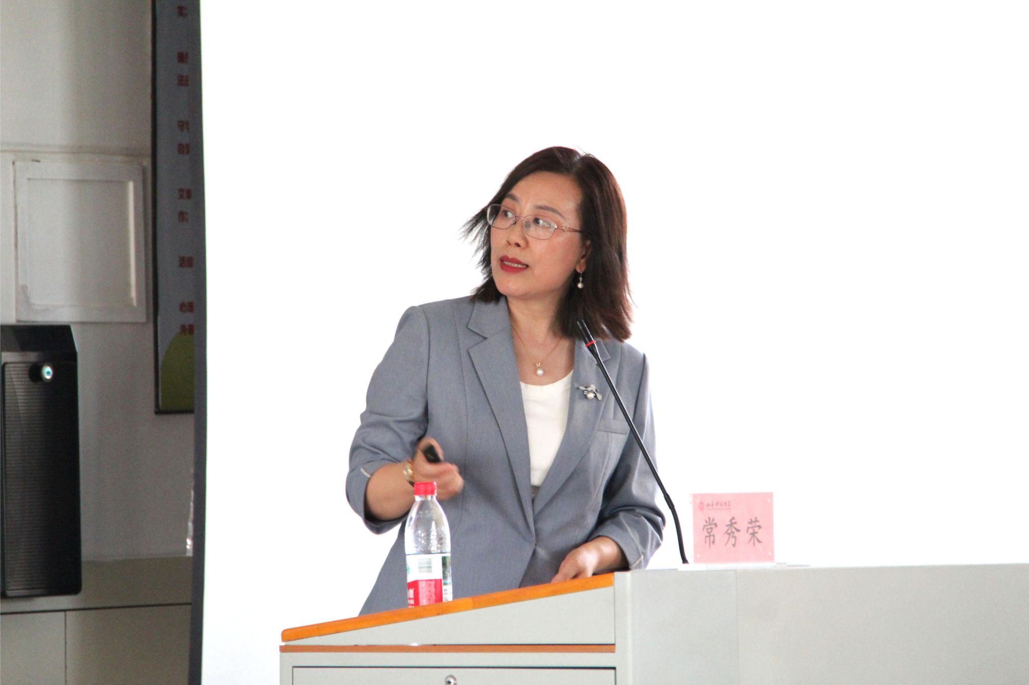 在立信楼304阶教举办2025年“管理智慧大讲堂”第四期,优秀MBA校友、全国女职工建功立业标兵(2009)常秀荣女士为同学们带来《职场软实力——商务礼仪》专题讲座。学院2023级全体同学200余人参加,学院党委副书记周志刚主持。