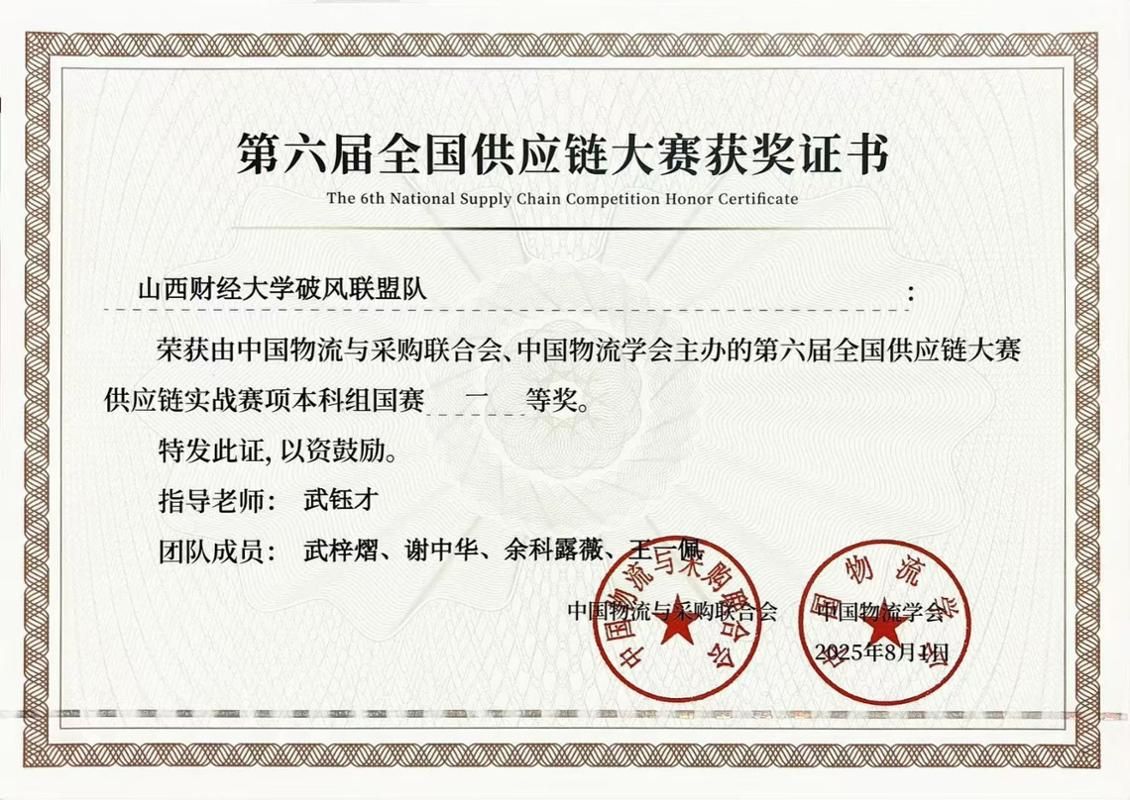 学子在第六届全国供应链大赛供应链实战赛项中荣获一等奖