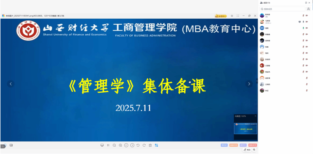 国家级一流本科课程《管理学》课程组成功举办“人工智能赋能课程教学质量提升”主题集体备课活动。课程组全体教师参加本次会议,会议由《管理学》课程组常务负责人马燕翔老师和管理实务教研室主任程艳博士联合主持。