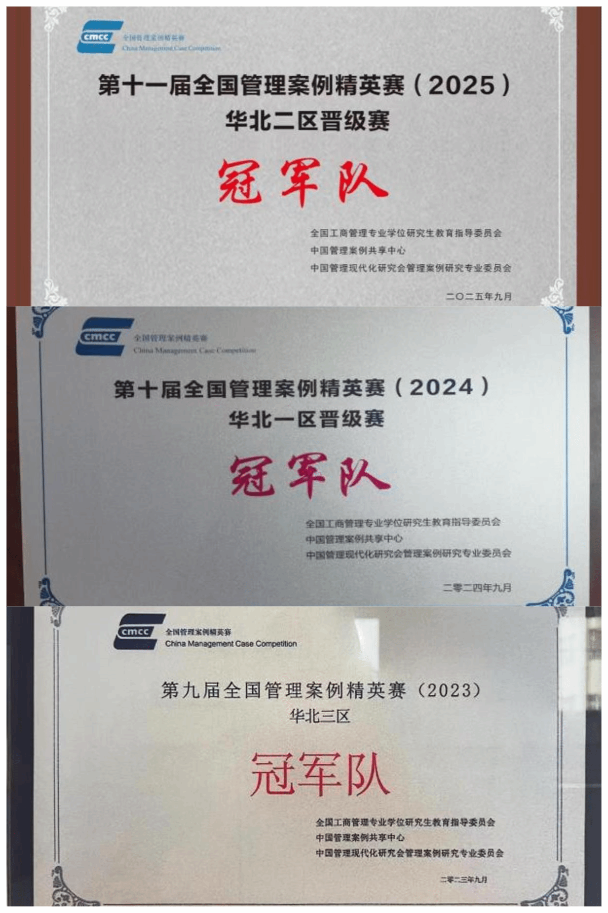 MBA1队勇夺冠军,MBA2队荣获季军。这是继第九届(2023)、第十届(2024)全国管理案例精英赛区域晋级赛冠军后第三次获得区域晋级赛冠军,实现了在这一全国性大赛中区域晋级赛三连冠。