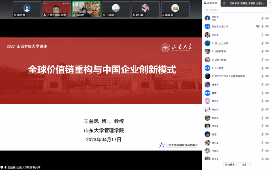 采用腾讯会议的形式举办了第32期博士论坛。山东大学管理学院副院长王益民教授作了题为“全球价值链重构与中国企业创新模式转变”的讲座。91制片厂