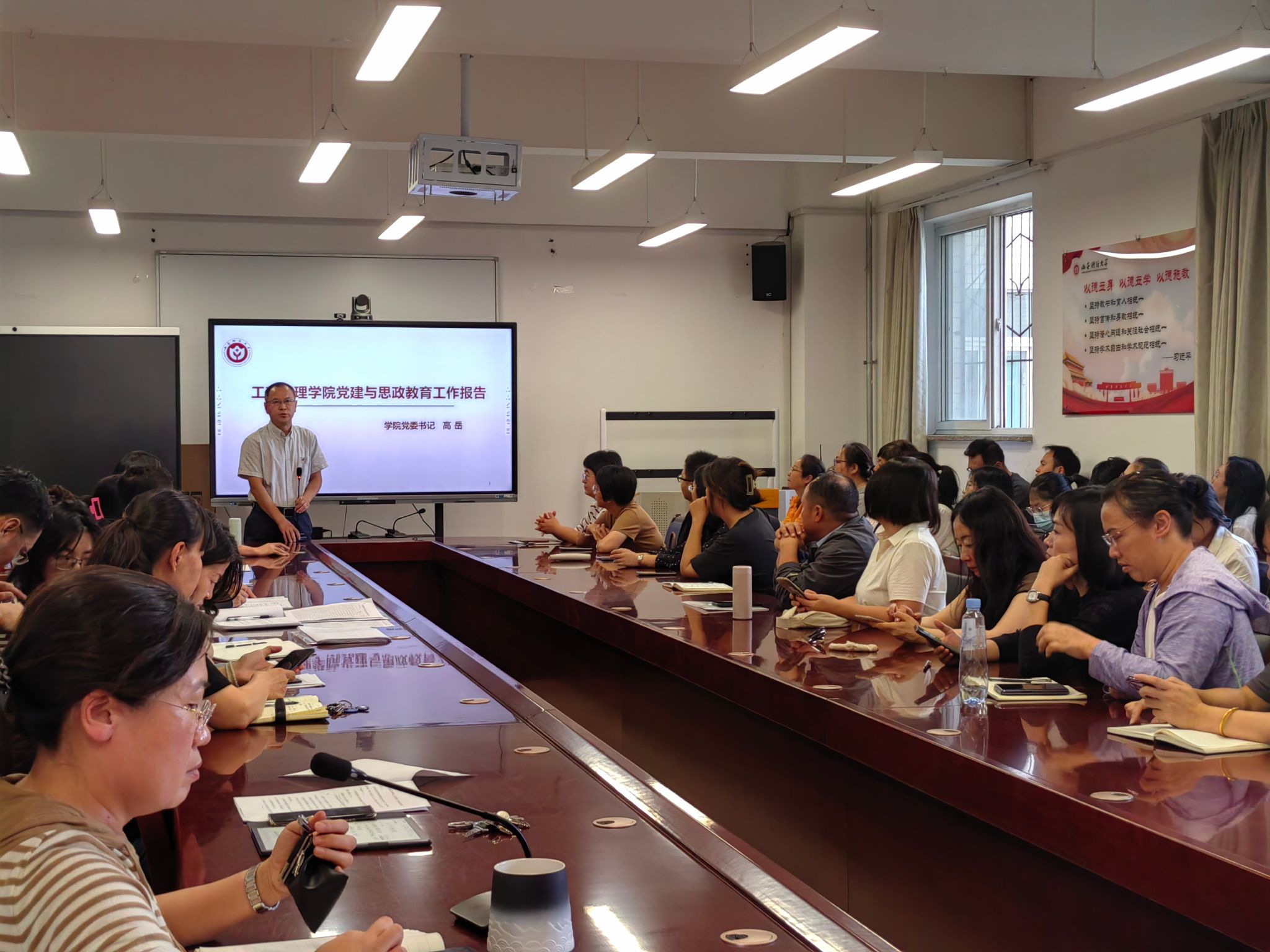 党建与思政教育作专题报告,学院领导和全体教职工参加会议。会议由薛继东副院长主持。