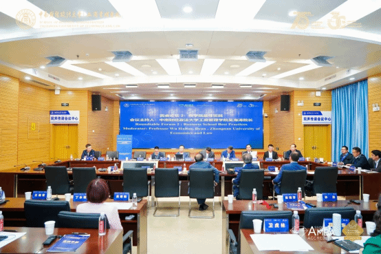 会议伊始,中南财经政法大学副校长刘仁山教授致欢迎辞。在主题演讲环节,AMBA&BGA总裁Andrew Main Wilson分享了全球范围内AMBA和BGA认证院校的数量及发展历程,概括了理想商学院的十大关键特征(包括更紧密国际合作、强化社会影响力、加快课程创新、增强终身学习、提升学生职业力、加大学生多样性、注重可续发展、最优教学模式、引领科技AI、拓展数智设施)。随后,AMBA&BGA创新总监和认证总监George Iliev介绍了AMBA和BGA近十年奖项的设置,以及对商学院如何获得这些认证奖项的建议。中国科学技术大学管理学院院长叶强教授在题为《数智时代的管理创新与管理教育》的主题演讲中,展示了人工智能的升级、最新技术及工具,并探讨了生成式人工智能的产业应用,总结了数智时代人才培养的方法及未来趋势。在圆桌论坛环节,各大商学院领导积极参与,热烈讨论,分享了各自领域的最新实践经验和成果,共同为商学院教育的未来发展指明方向。
