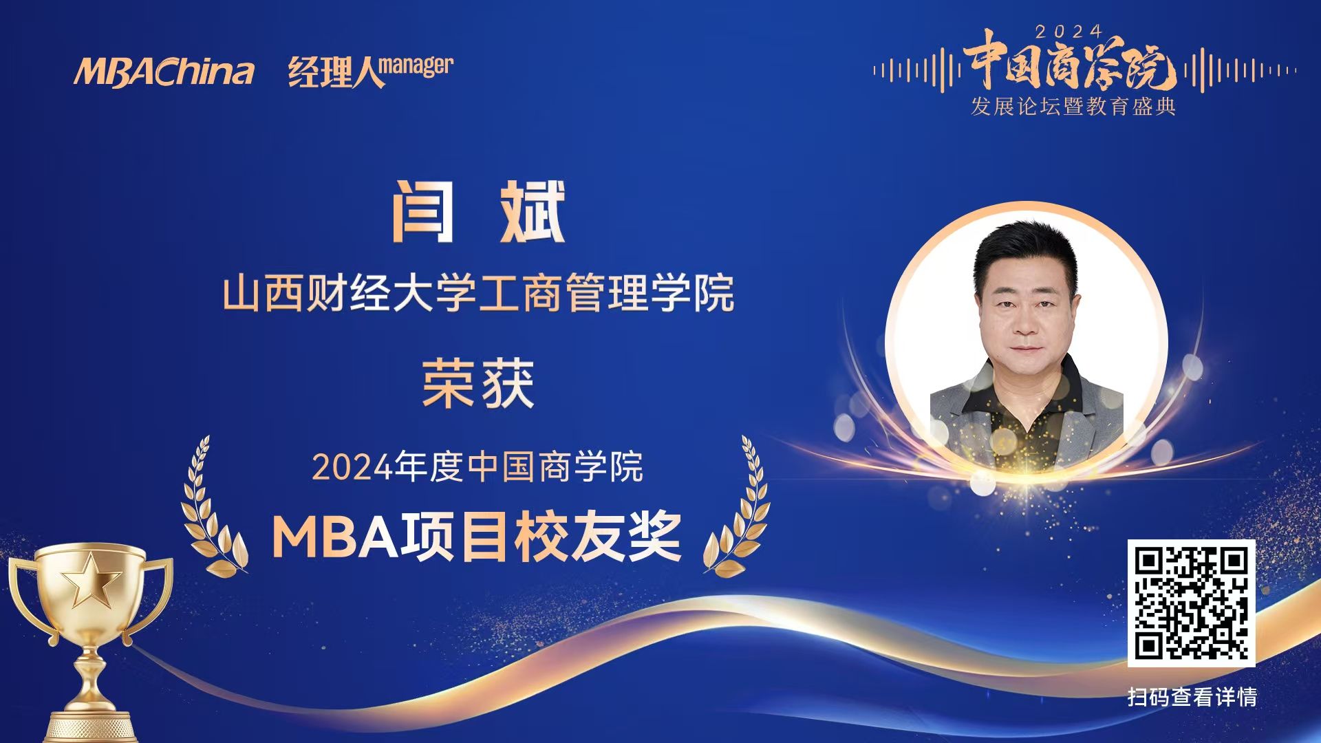 我校EMBA校友闫斌荣获 “2024年度中国商学院MBA项目优秀校友奖”