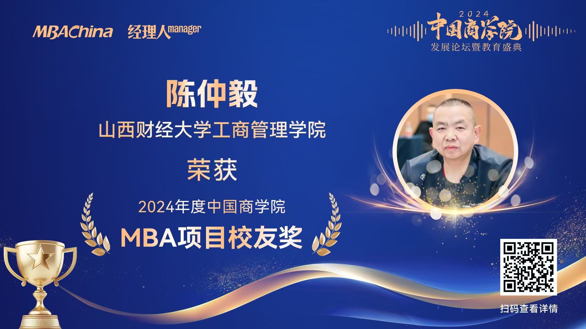 我校EMBA校友陈仲毅荣获 “2024年度中国商学院MBA项目优秀校友奖”
